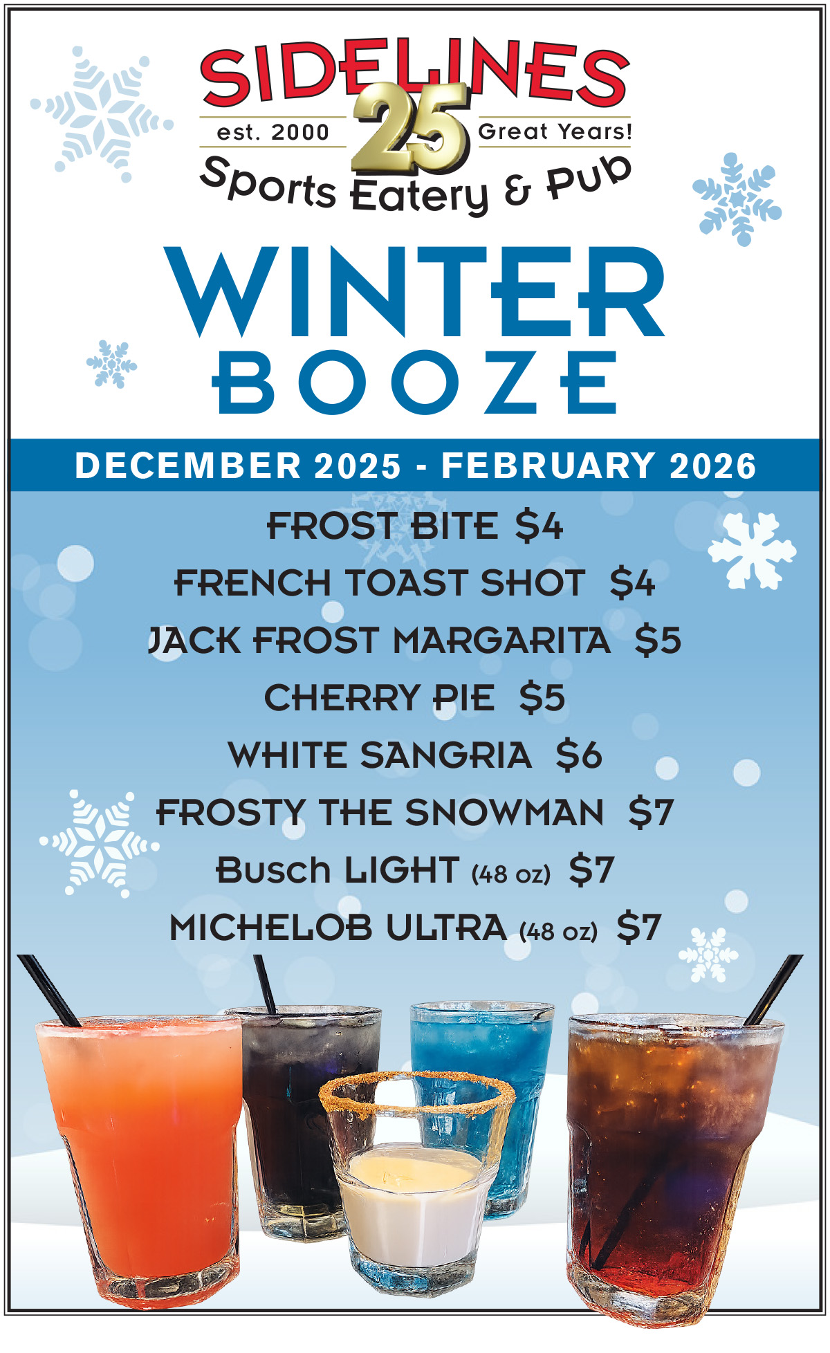 Explore a menu packed with flavor and unique items! Whether you’re in the mood for classic American favorites or something with a twist, Sidelines Sports Eatery has you covered. From our famous fowl balls to our mouthwatering burgers, each dish is crafted to perfection. Check out our selection of appetizers, salads, sandwiches, and entrees that will satisfy any craving. Don’t forget to pair your meal with one of our signature cocktails or a cold beer from our extensive drink menu.